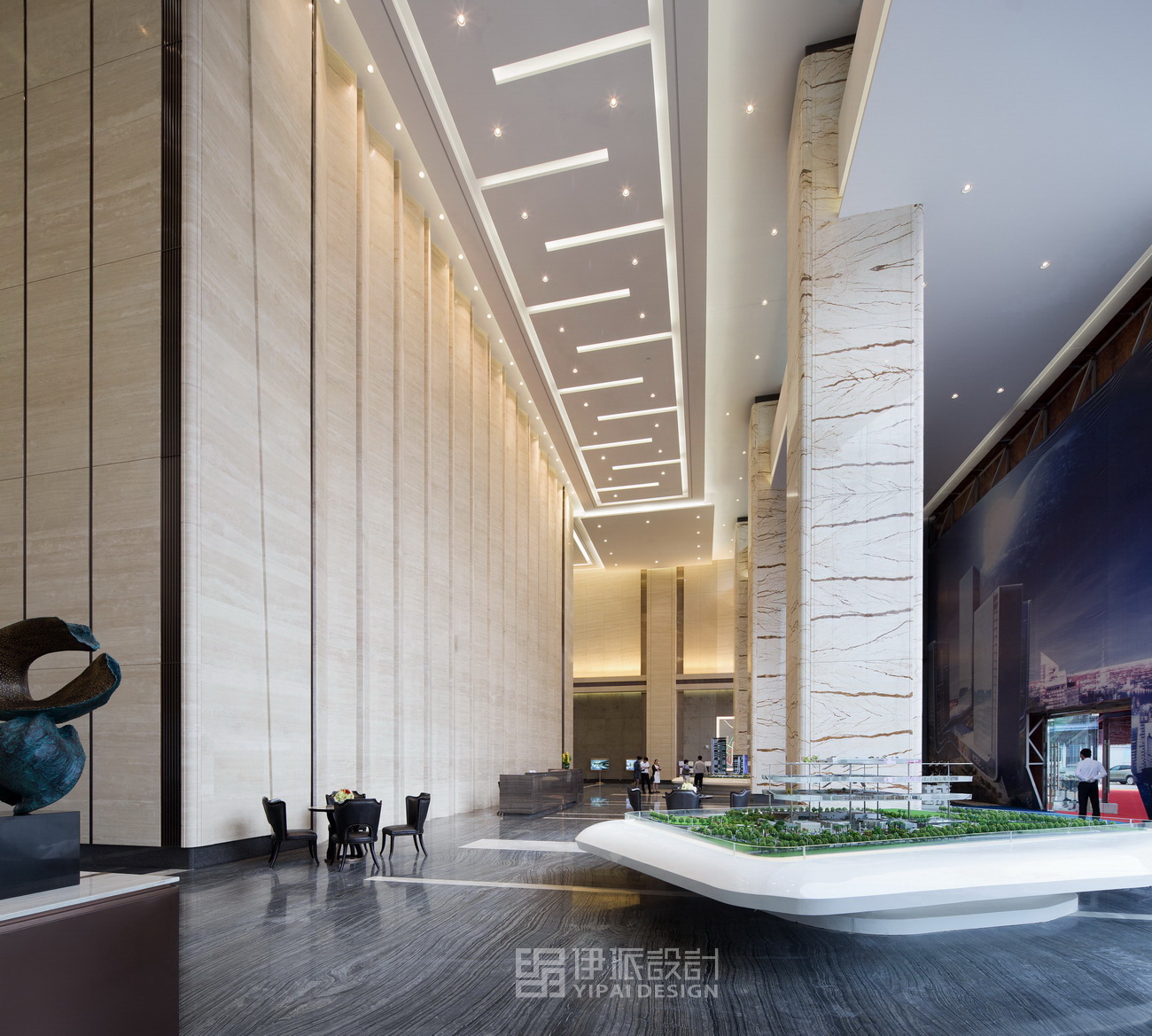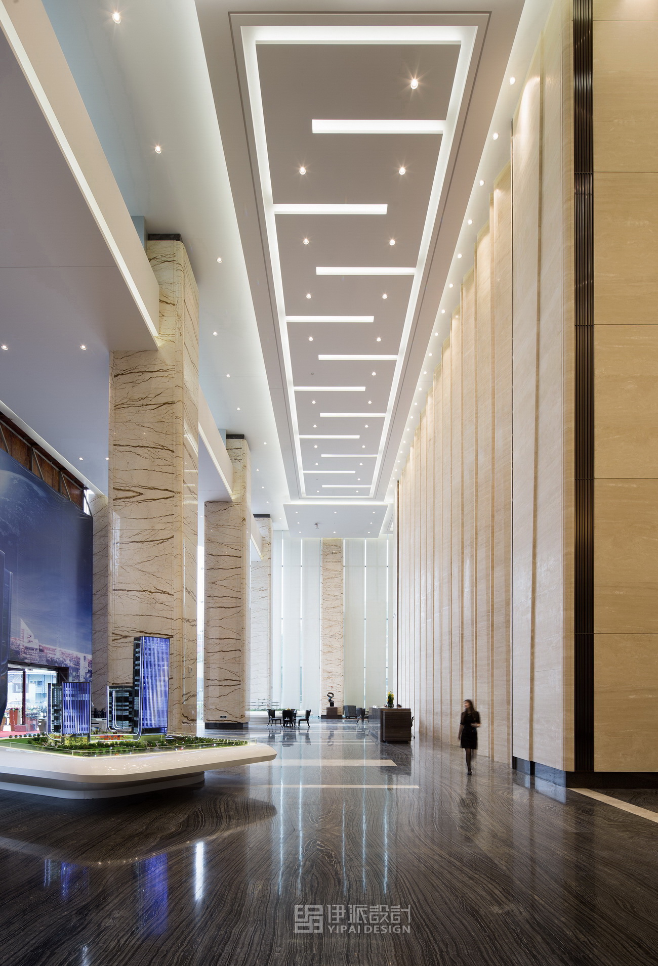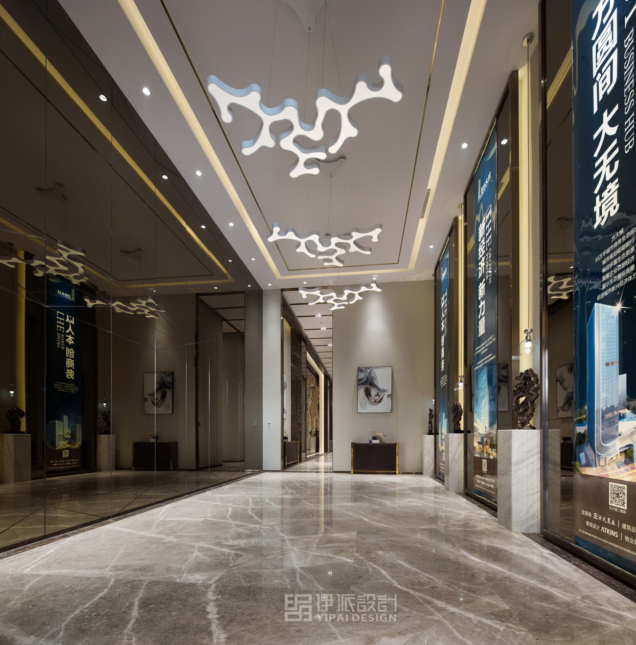 南山華僑城片區(qū)的方大城樓盤,規(guī)劃面積44000平方米,售樓處面積2500平方米,定位于標(biāo)準(zhǔn)寫字樓,因此,售樓處設(shè)計(jì)手法皆是以呈現(xiàn)現(xiàn)代高效辦公大樓視覺(jué)效果為主。在層高優(yōu)勢(shì)的基礎(chǔ)上,通過(guò)空間韻律與層次,賦予空間更為現(xiàn)代化、高效化的視覺(jué)、辦公體驗(yàn)感。