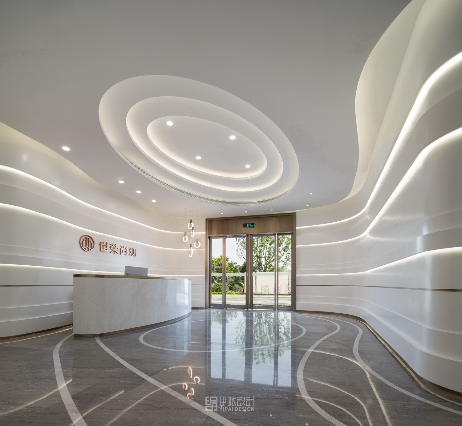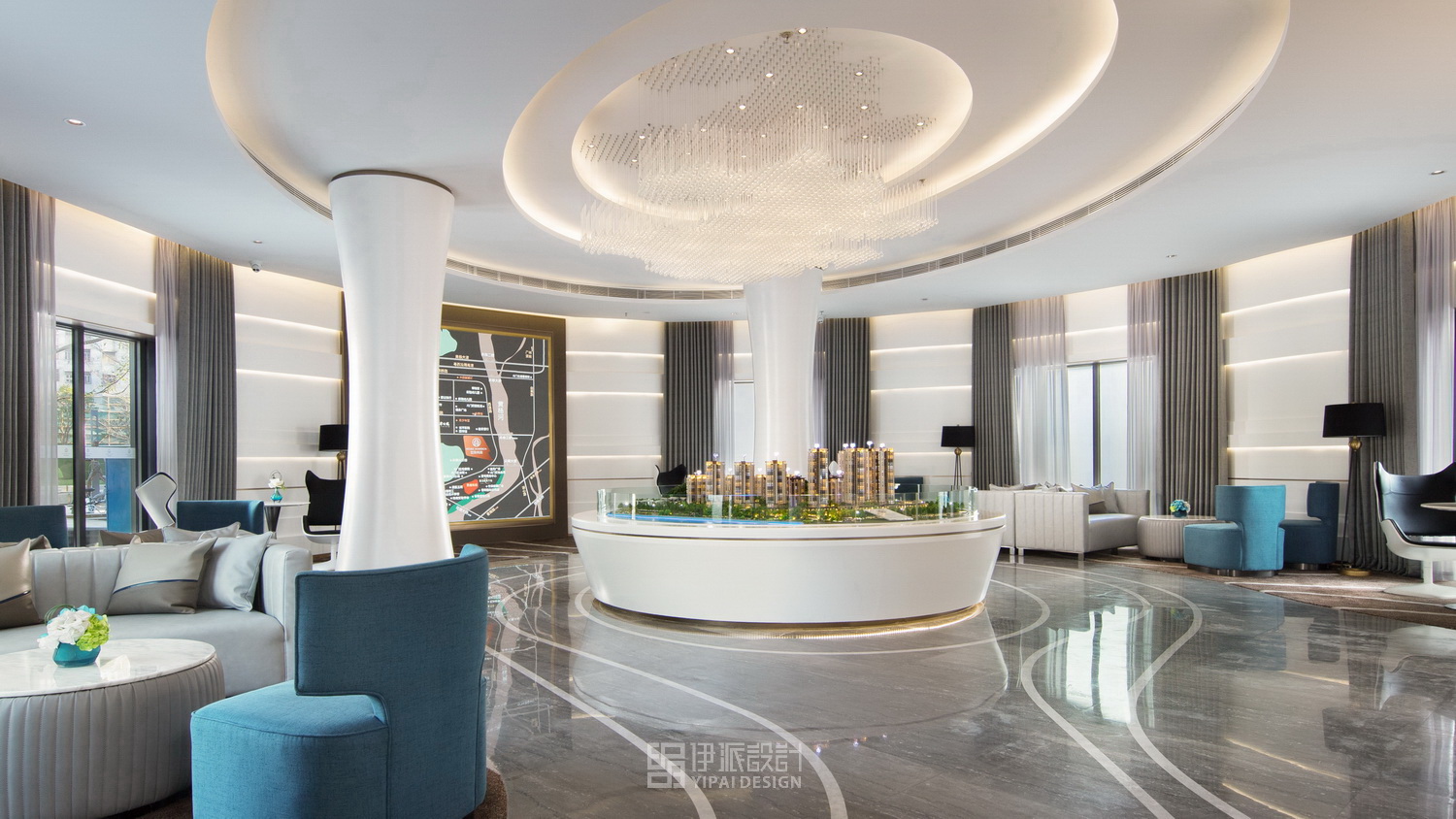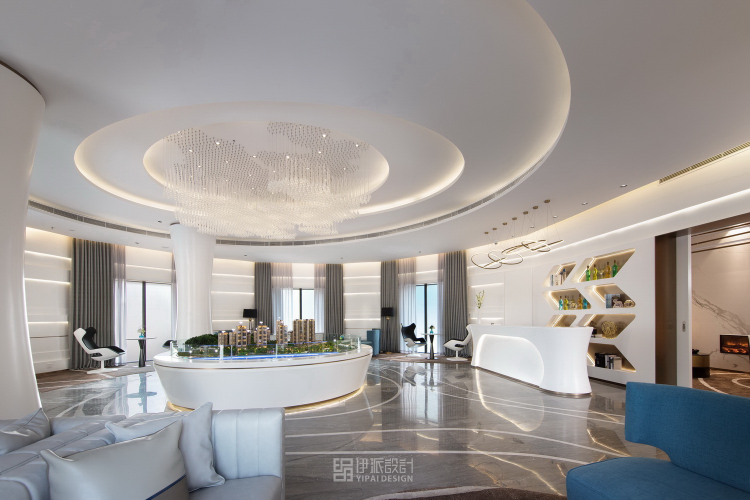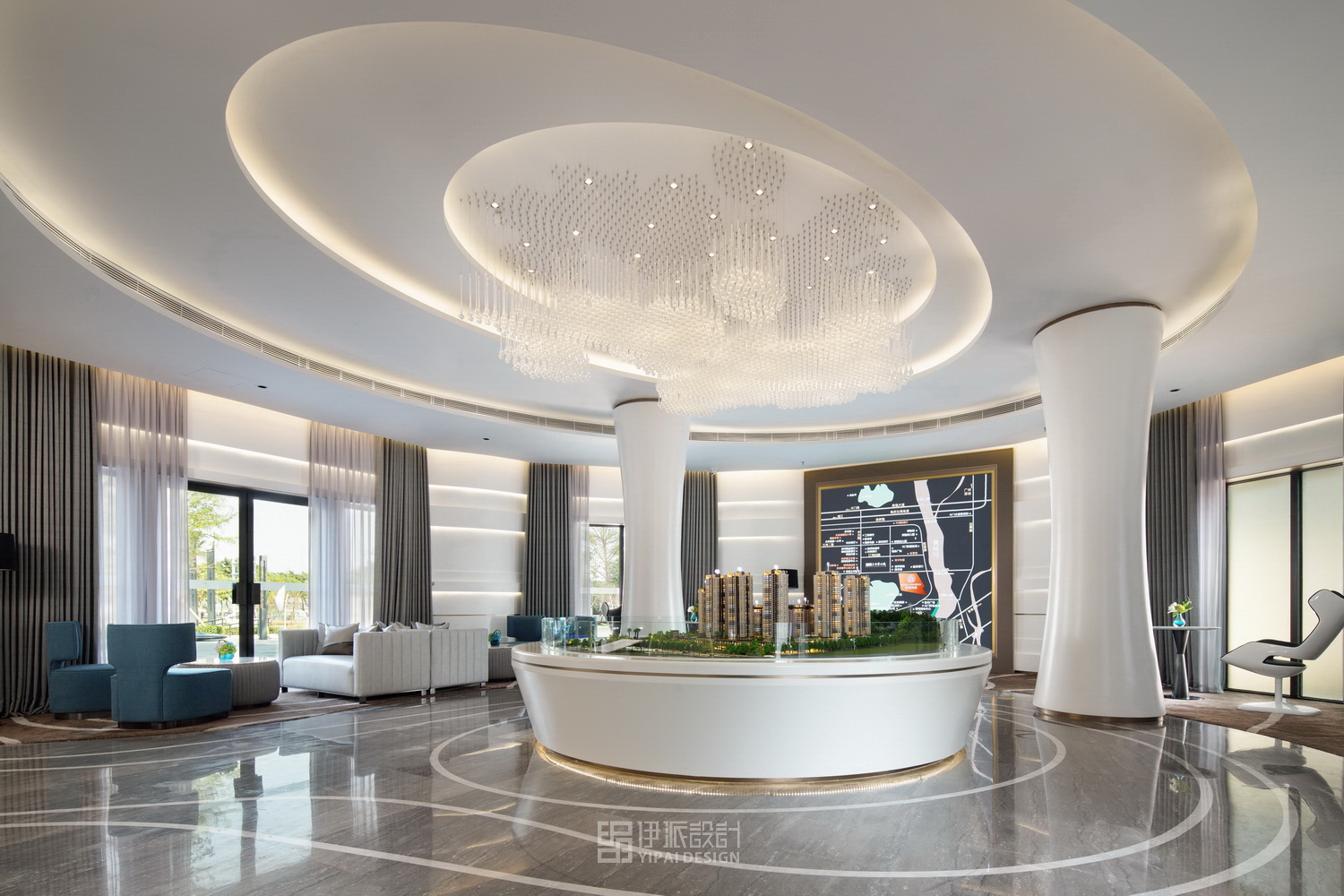 在設計中,利用人文與自然的結合,突出城市印象和地理優(yōu)勢。售樓中心根據(jù)珠海本地的氣候條件和對項目顧客群定位的研究,確定了在結合功能、美觀、經(jīng)濟的前提下,突出簡約、明亮、時尚的設計空間理念。接待前廳是售樓中心的第一觀感,以波紋樣式為曲線界面設計主題,寓意于韻律藝術中照見斗門明珠的璀璨。