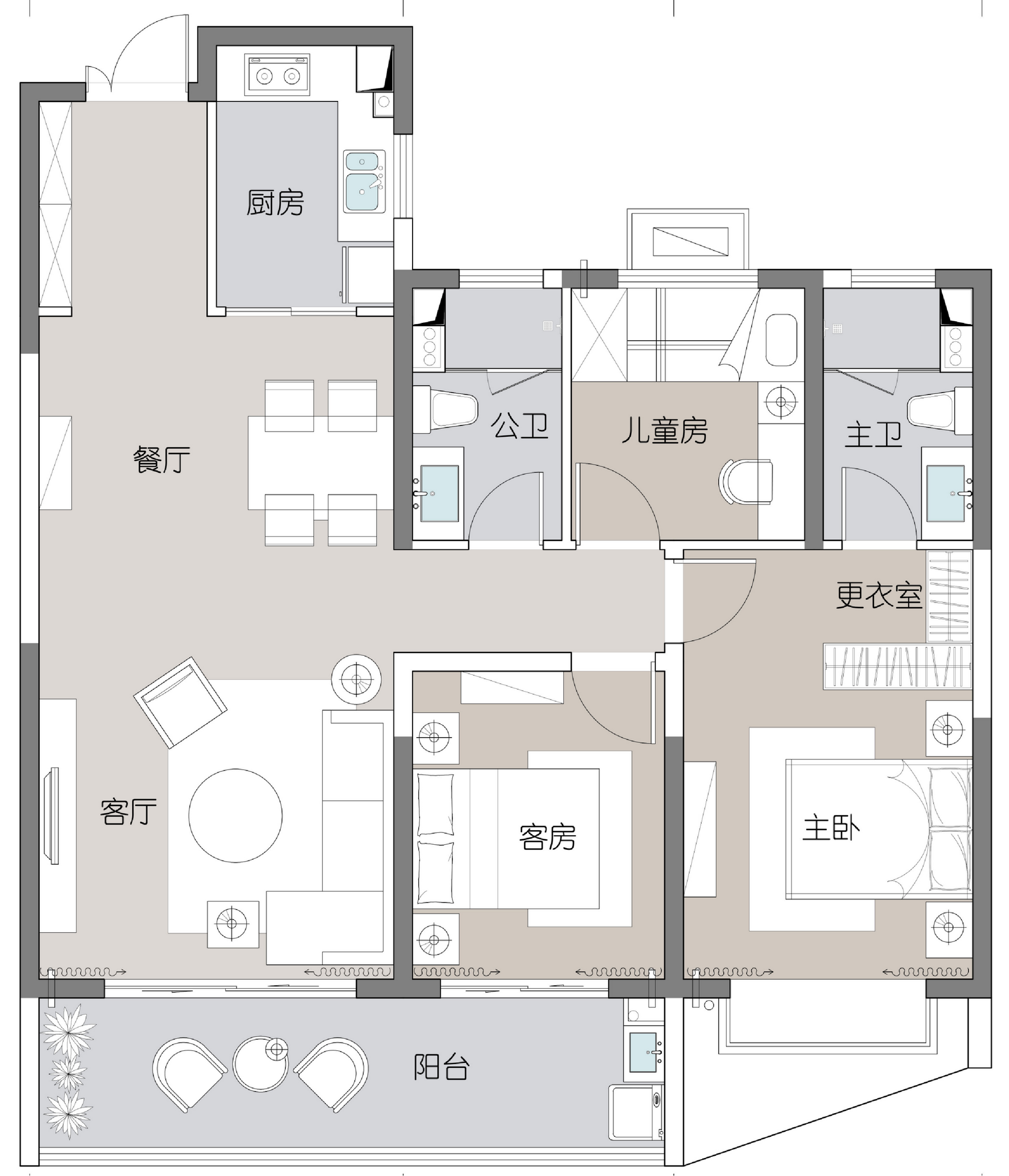 項目名稱:臨汾中心城1#125戶型公寓樣板房設(shè)計
