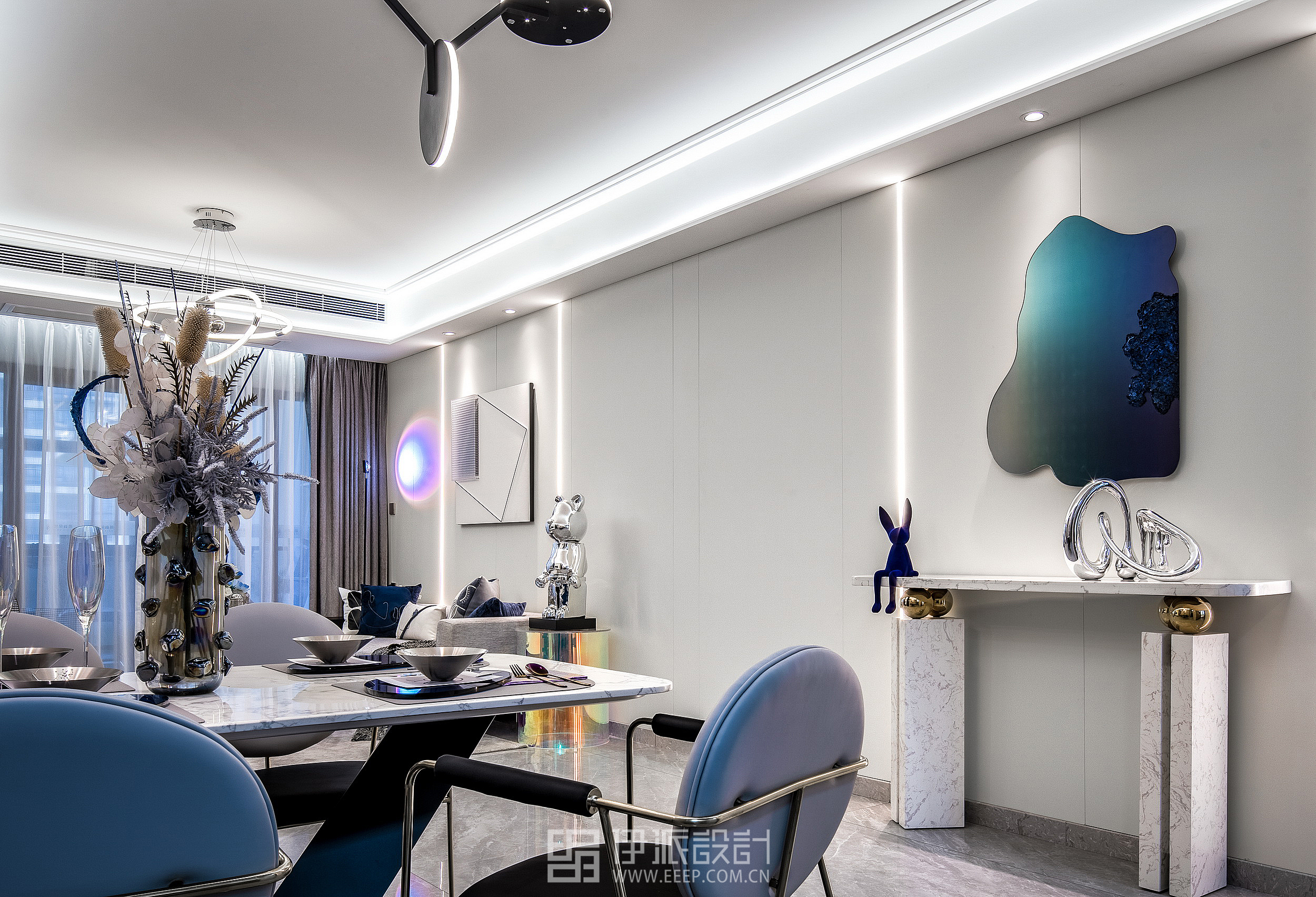 新潮的配色,極具現(xiàn)代感的設(shè)計(jì),本案從備受年輕人喜歡的網(wǎng)紅INS風(fēng)中汲取靈感,同時(shí)融入時(shí)尚元素,以前衛(wèi)的設(shè)計(jì)語(yǔ)言,在空間的呈現(xiàn)將設(shè)計(jì)融于人性,回歸最基本的生活與敘事,從細(xì)節(jié)處表達(dá)對(duì)居住者的關(guān)懷。