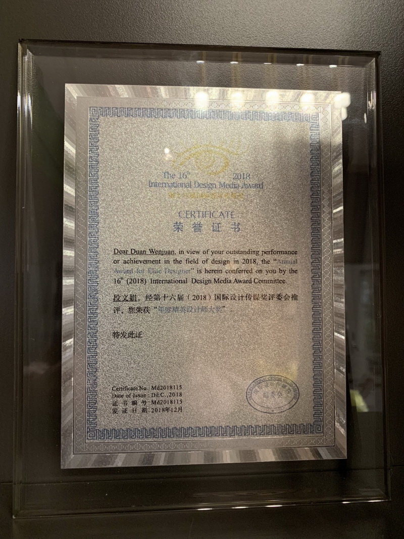 段文娟女士榮升“深圳室內(nèi)設(shè)計(jì)師協(xié)會(huì)副會(huì)長(zhǎng)”及榮獲“深圳室內(nèi)設(shè)計(jì)20年·行業(yè)人物”