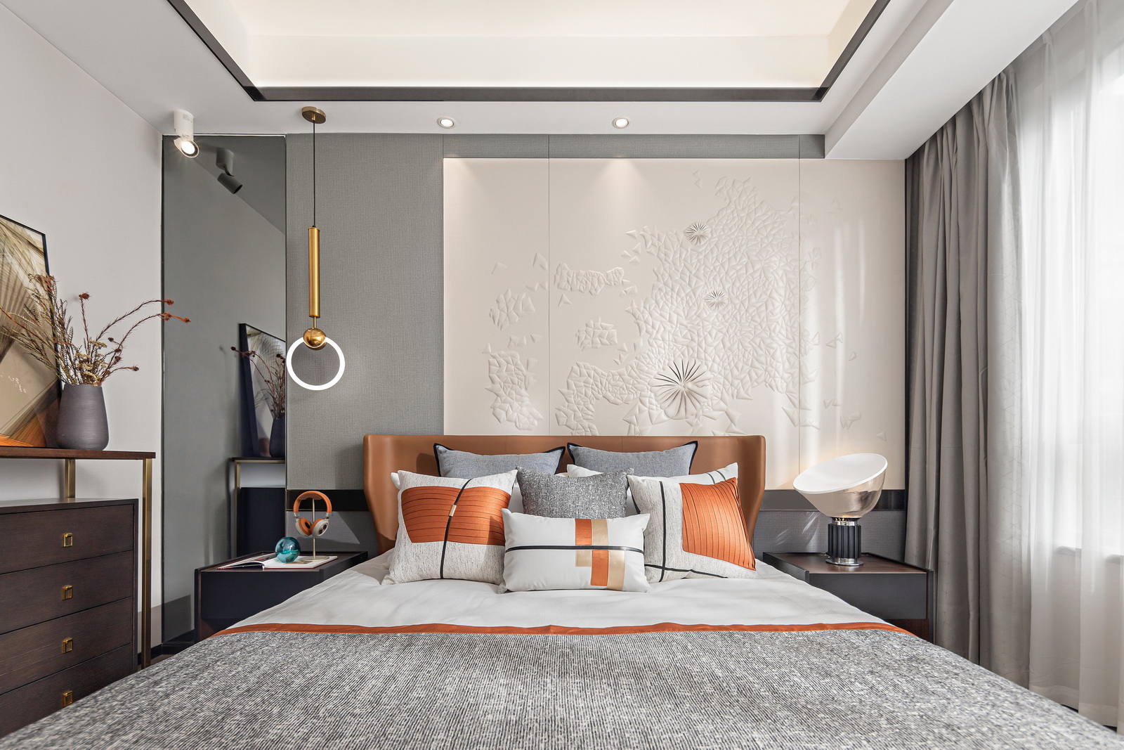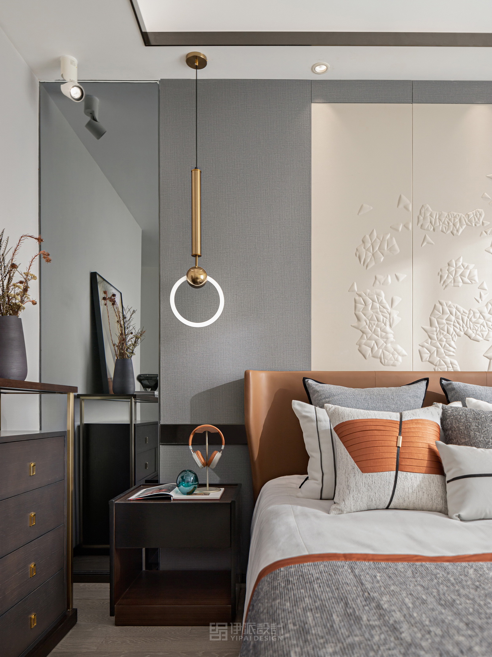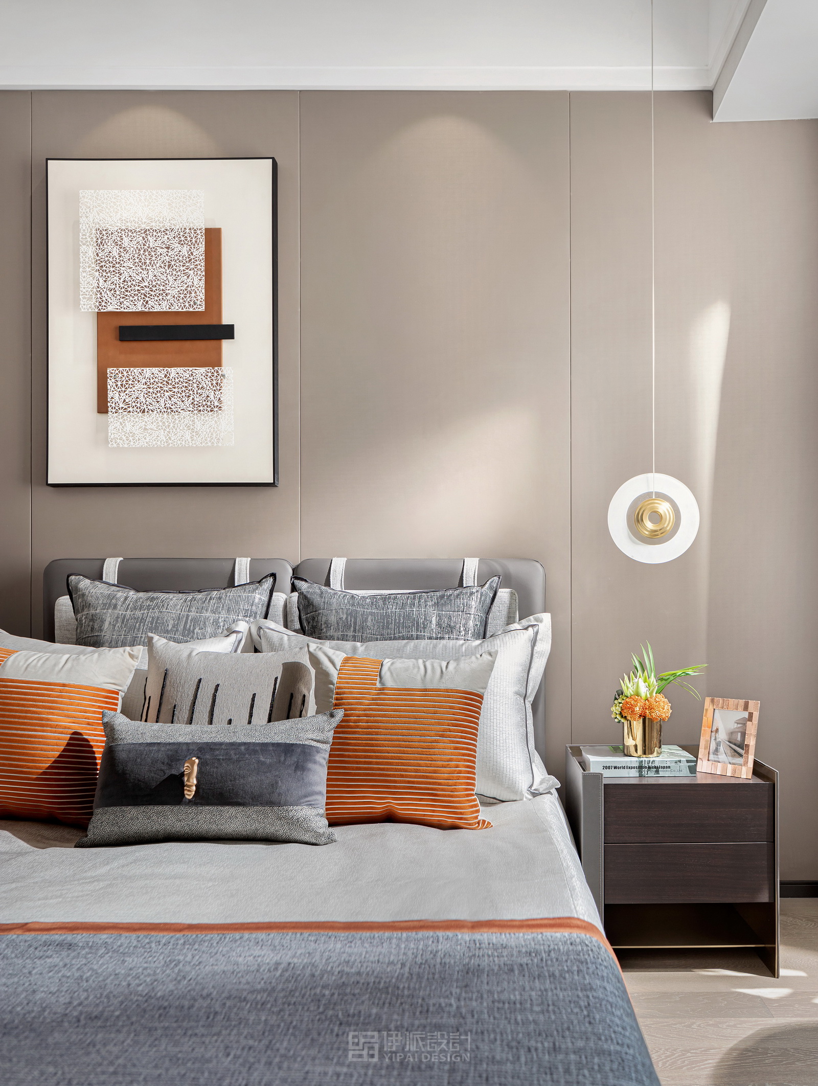 本案風(fēng)格為現(xiàn)代港式風(fēng)格,采用時(shí)尚精簡、低調(diào)內(nèi)斂的高級(jí)灰是用于家居裝扮的首選基調(diào)色彩,呈現(xiàn)優(yōu)雅魅力和精致大氣的視覺感官,符合人們對(duì)現(xiàn)代生活的審美需求。同理,作為潮流都市代表色之一的暖橙,伊派設(shè)計(jì)在居家設(shè)計(jì)中的運(yùn)用中,讓空間張揚(yáng)不浮夸、經(jīng)典且時(shí)尚,成為永恒不變的奢侈品味。