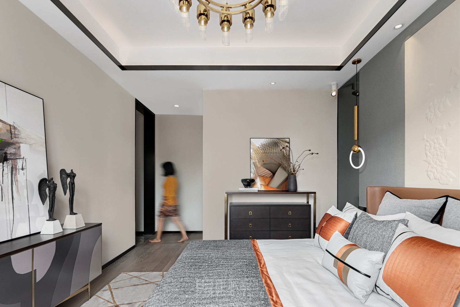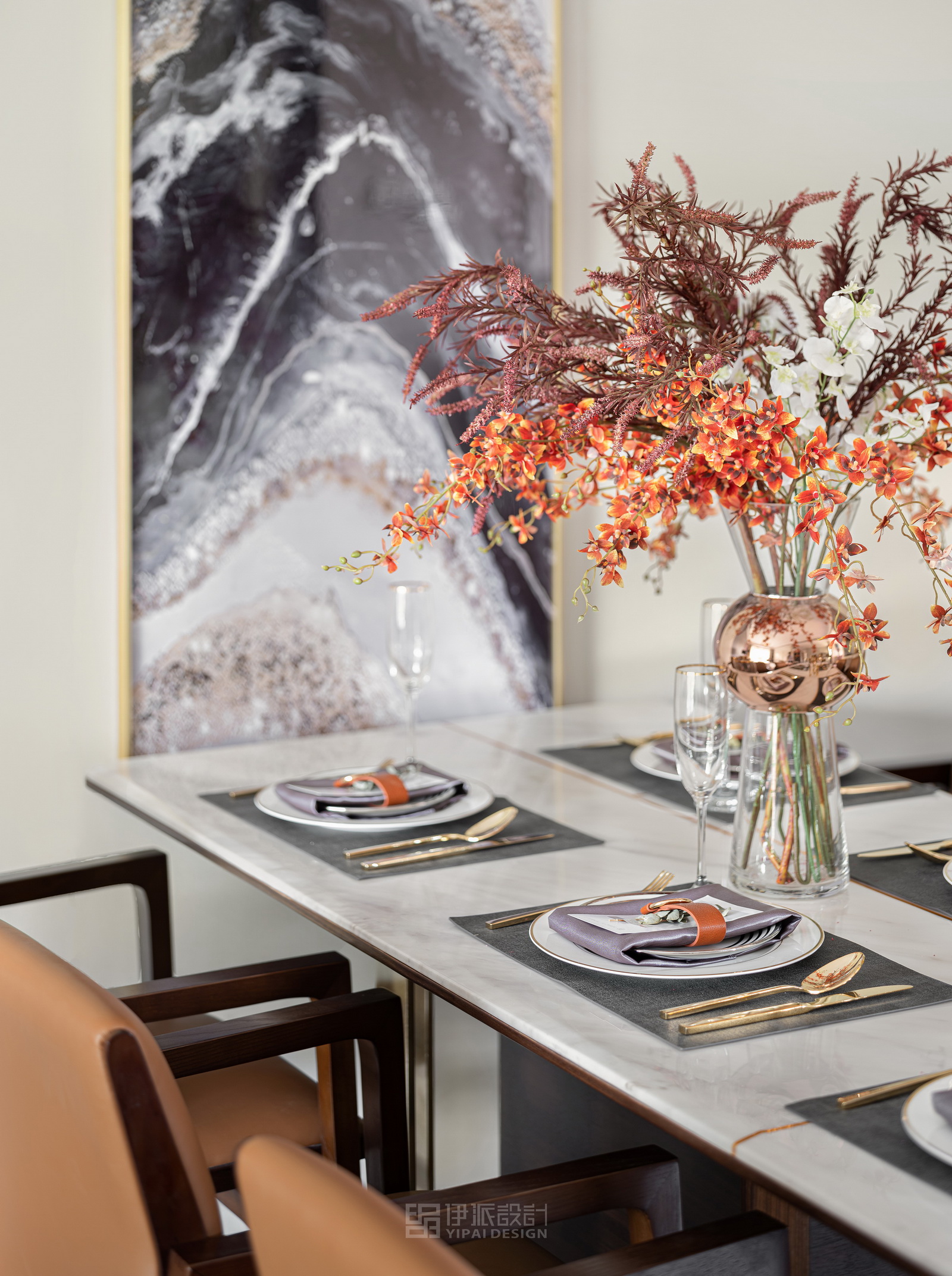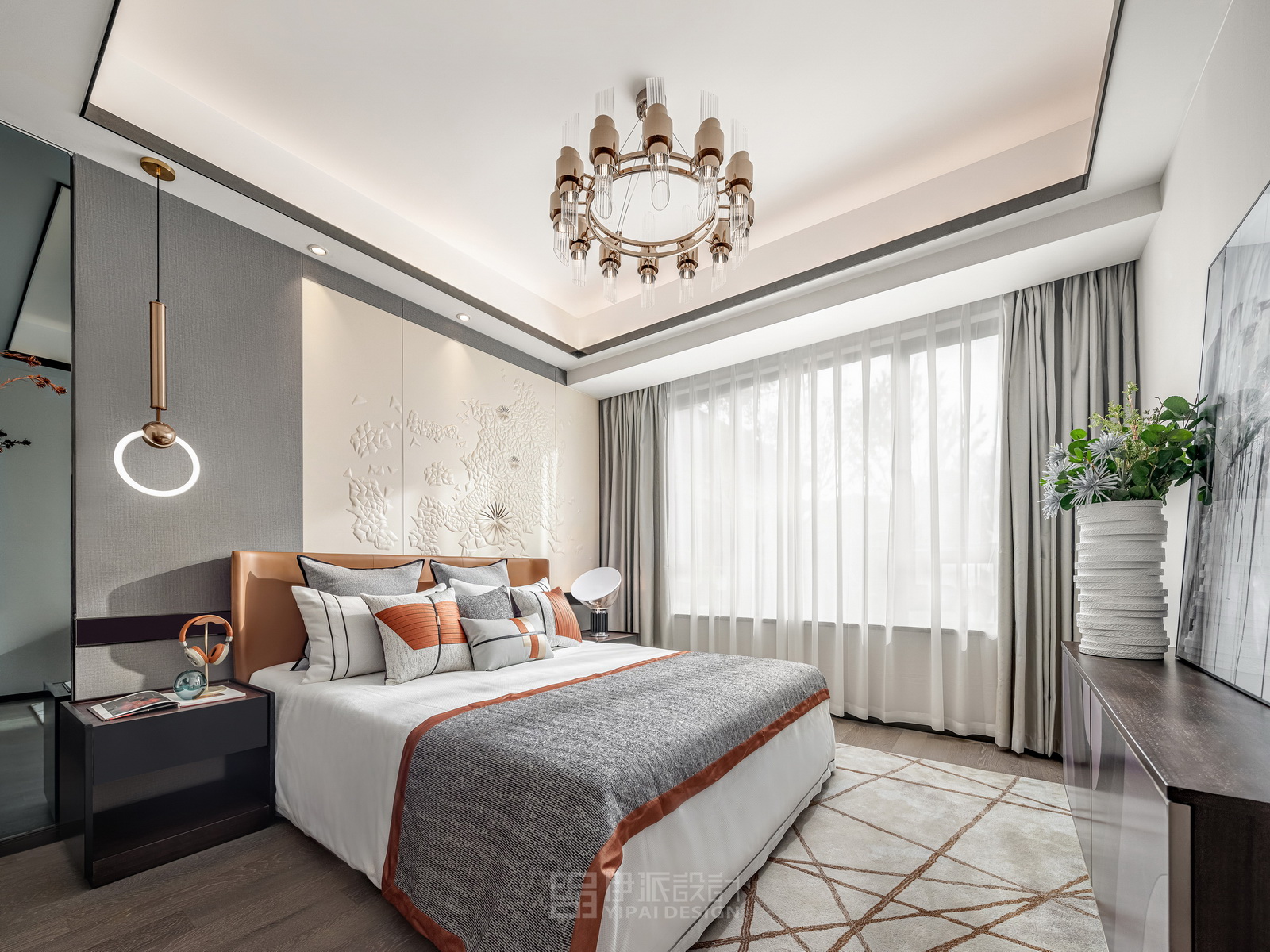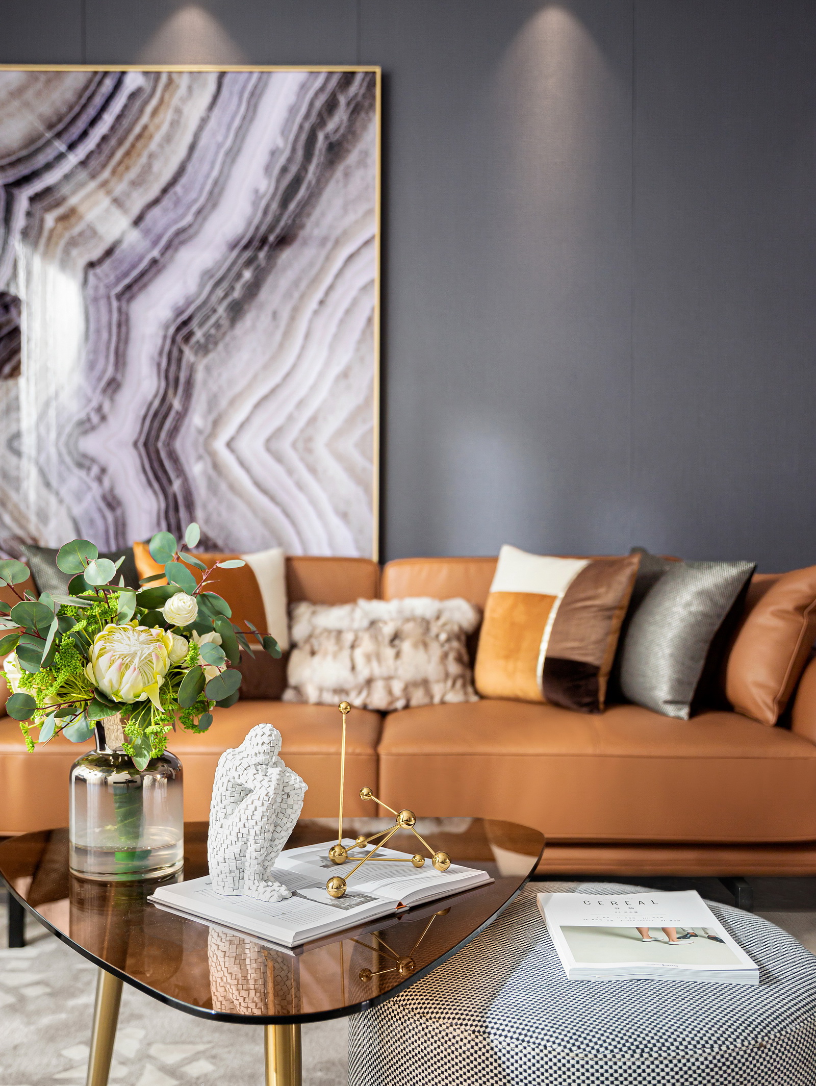 本案風(fēng)格為現(xiàn)代港式風(fēng)格,采用時(shí)尚精簡、低調(diào)內(nèi)斂的高級(jí)灰是用于家居裝扮的首選基調(diào)色彩,呈現(xiàn)優(yōu)雅魅力和精致大氣的視覺感官,符合人們對(duì)現(xiàn)代生活的審美需求。同理,作為潮流都市代表色之一的暖橙,伊派設(shè)計(jì)在居家設(shè)計(jì)中的運(yùn)用中,讓空間張揚(yáng)不浮夸、經(jīng)典且時(shí)尚,成為永恒不變的奢侈品味。