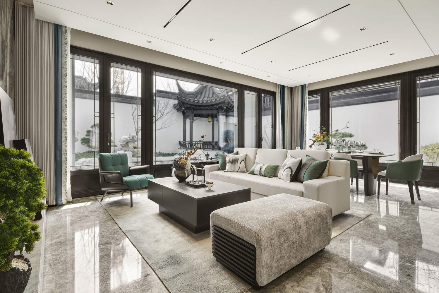 項目位于泰州城北板塊,項目以拙政園、留園等蘇式名園為圓點,打造具有五進歸家禮序;結合中國傳統園林“借景”等手法,布置園林,創(chuàng)造意境。