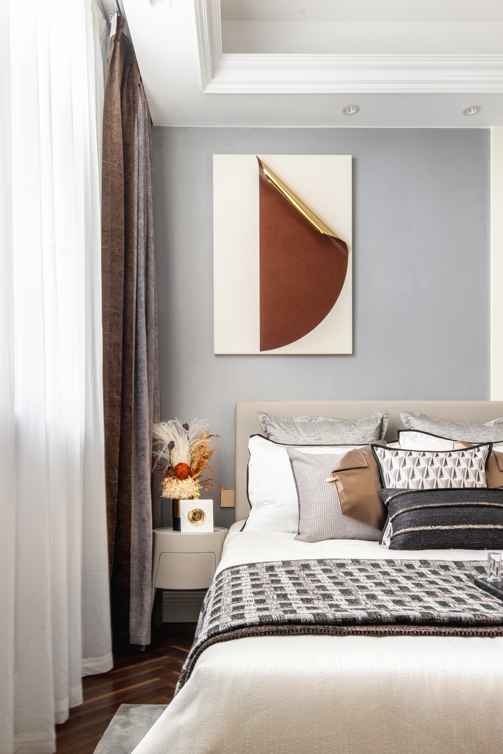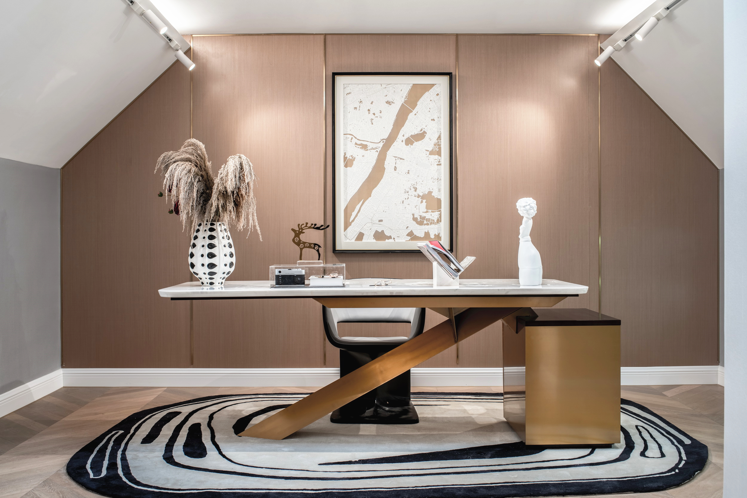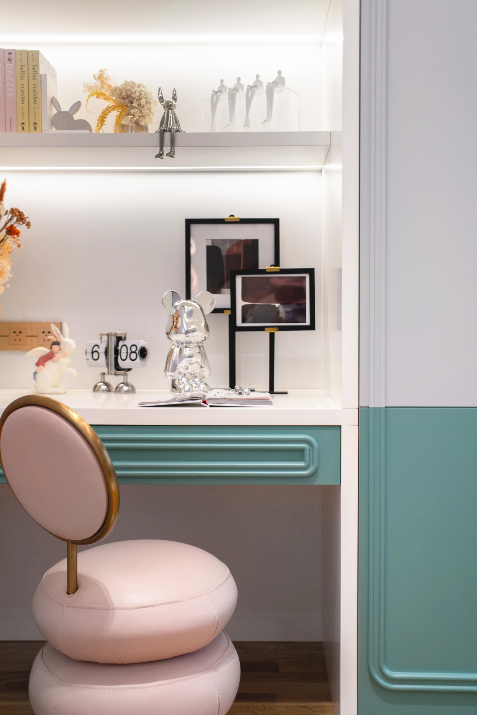 伊派設(shè)計從日常生活尺度出發(fā),于本案中融入恰到好處的浪漫時尚輕法式風(fēng)格,輔以現(xiàn)代手法設(shè)計,于空間、生活、美學(xué)中尋求到一種微妙的平衡,還原一方浪漫自由的天地。